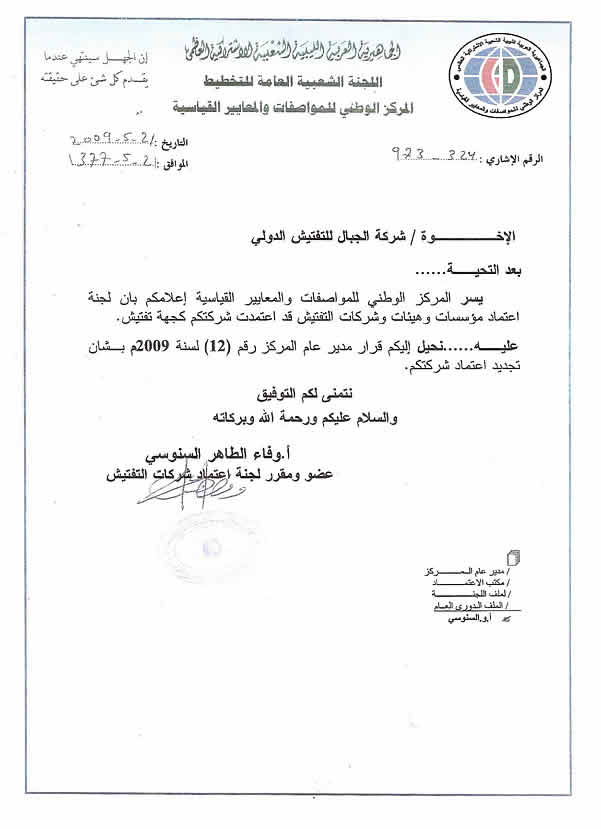 - الشركة معتمدة من قبل المركز الوطني الليبي للمواصفات والمقاييس (LNCSM).)